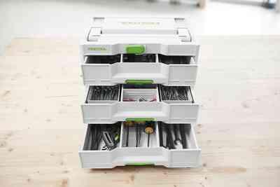 | У висувні шухляди сортейнера³ можна покласти оснастку й багато дрібних деталей. Все знайде своє місце та буде завжди під рукою. |