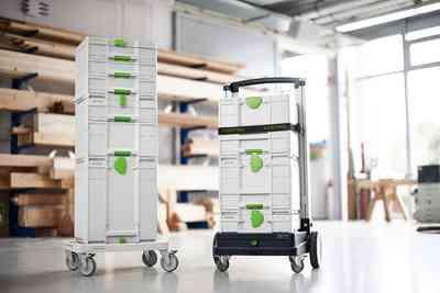 | Поставивши свій сортейнер³ на візок SYS-Roll або роликову дошку SYS-RB, ви можете швидко й без зусиль перевозити його майстернею або будмайданчиком. | Всі сортейнери³ сумісні між собою та стикуються з іншими систейнерами, пиловидаляючими апаратами та багатьма компонентами системного оснащення. | Висока шухляда SYS3-SORT/2 досить містка, в неї можна покласти великі предмети та електроінструменти. |