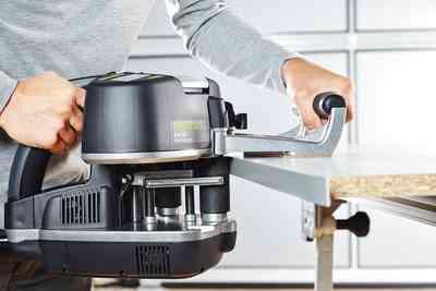 Фрезерування звисів та заокруглення крайки: фрезер MFK 700 Basic з гальмом з шарикопідшипником для чудових результатів обробки без будь-яких слідів. Чудовий результат завдяки точному регулюванню. |