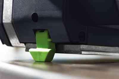Підпружинений захисний башмак утримує ніж на безпечній відстані від поверхні заготовки. При установці рубанка на заготовку, навіть на вузьку крайку, башмак автоматично складається. |