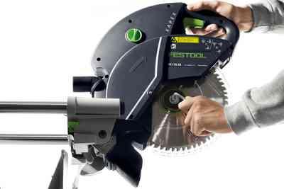 У спеціальному положенні для торцювання KS 120 може розпилювати бруски товщиною до 120 мм за допомогою упору під прямим кутом або стельовий плінтус і карнизний профіль в «оригінальному настінному розташуванні». |